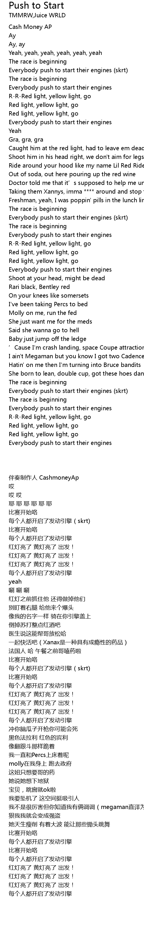 | [00:28.67] | Everybody push to start their engines (skrt) |