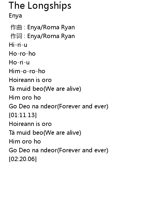 | [00:01.00] | 作词 : Enya/Roma Ryan |