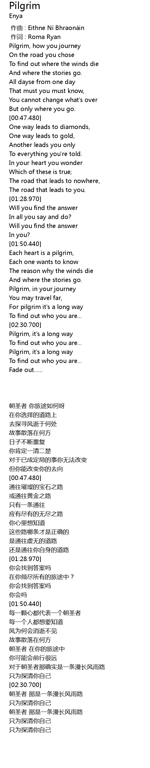 | [00:07.010] | Pilgrim, how you journey |