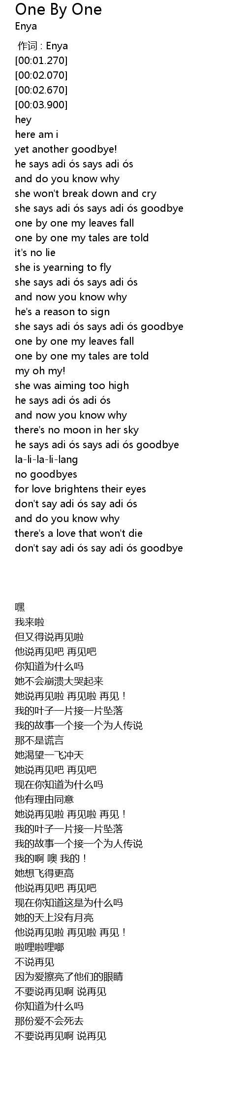 | [00:00.00] | zuò cí : Enya |