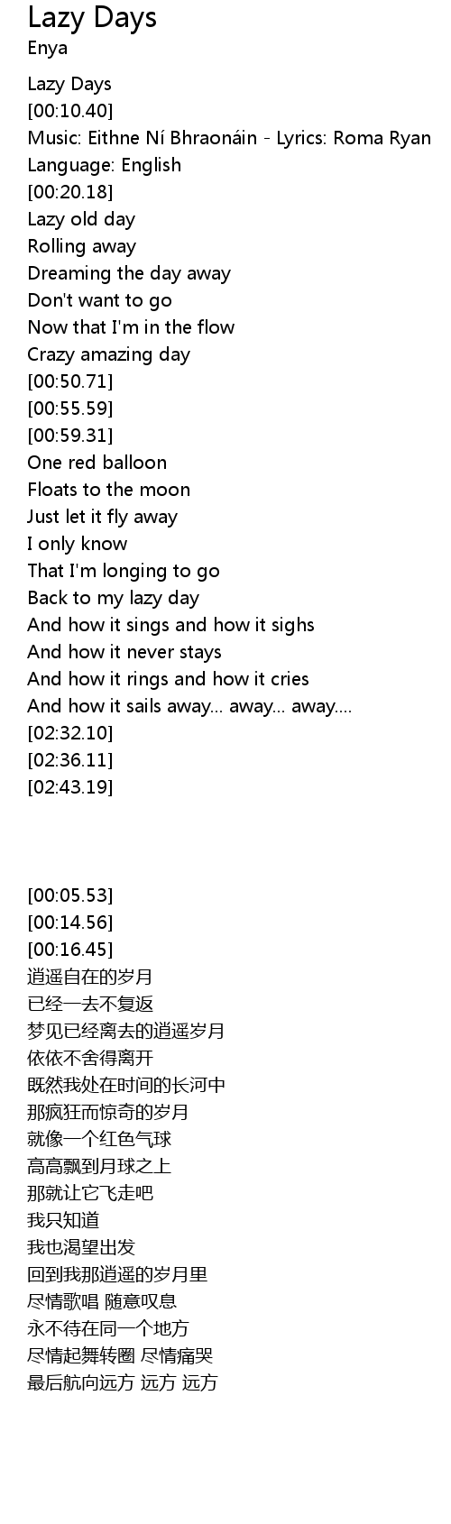 | [01:34.03] | Back to my lazy day |