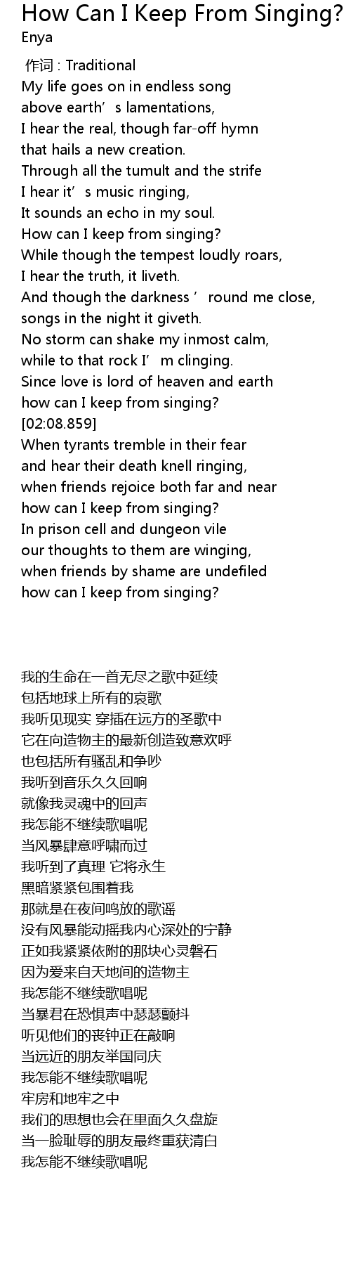 | [02:51.249] | how can I keep from singing? |