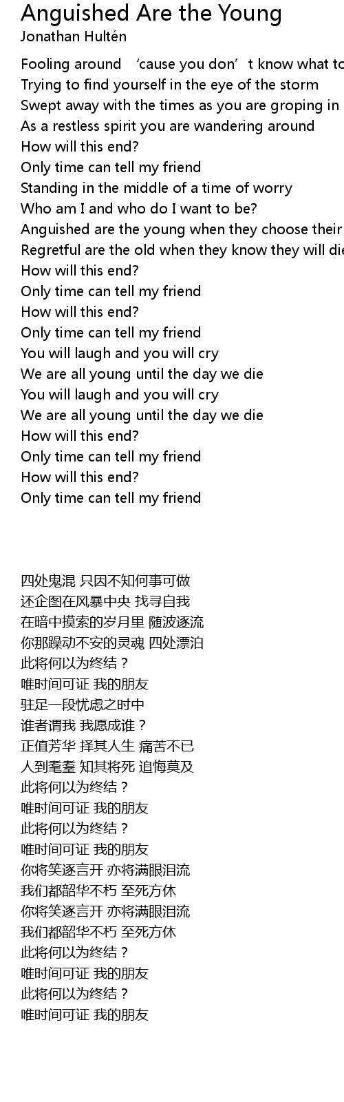 | [01:04.01] | Anguished are the young when they choose their lives |