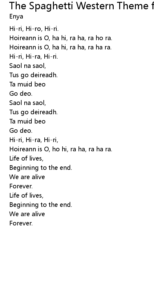 | Hoireann is O, ha hi, ra ha, ra ho ra. | |