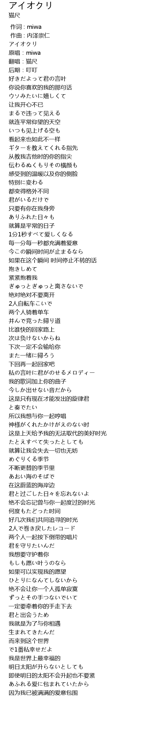 | [00:00.000] | 作词 : miwa |