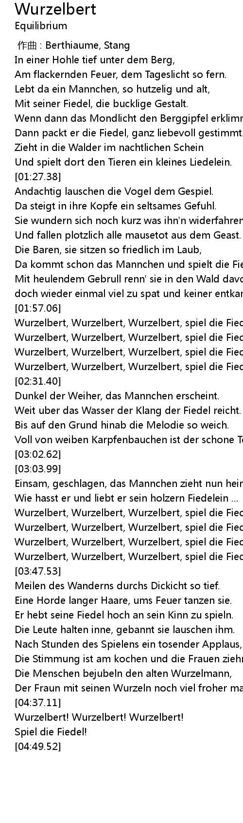 | [02:03.95] | Wurzelbert, Wurzelbert, Wurzelbert, spiel die Fiedel! |