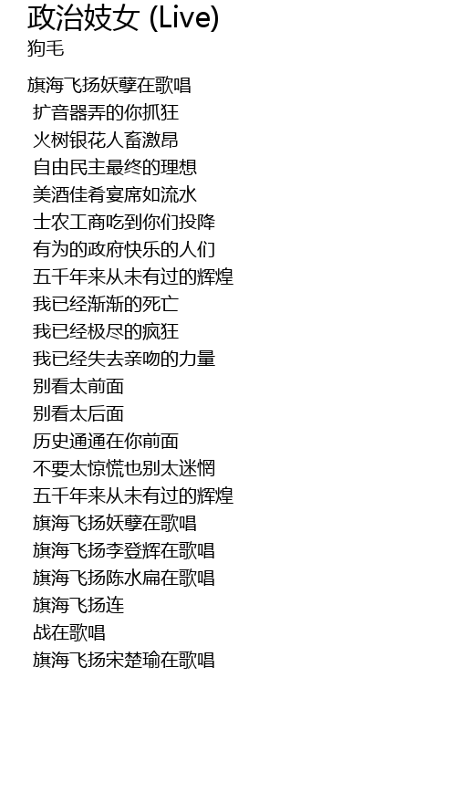 | Song | 政治妓女 (Live) |