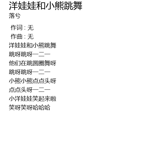 | [00:09.605] | 洋娃娃和小熊跳舞 |