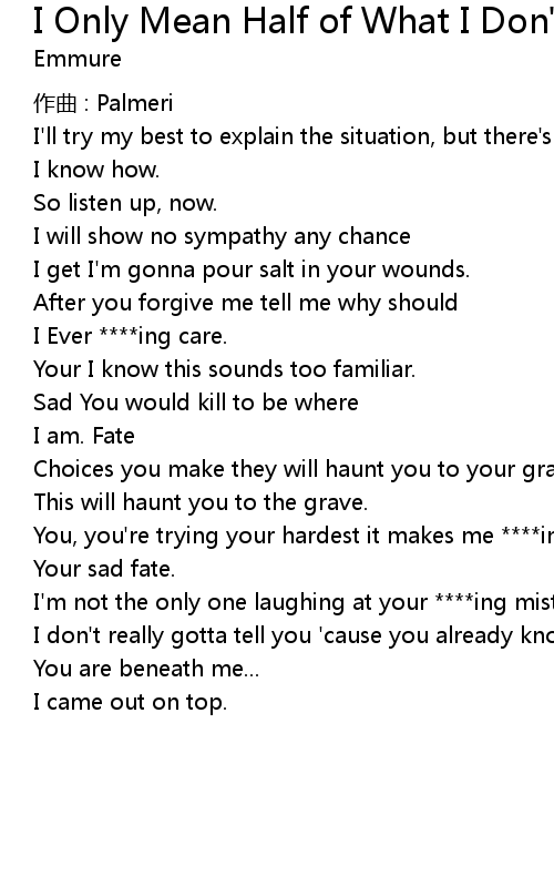| Song | I Only Mean Half of What I Don't Say |