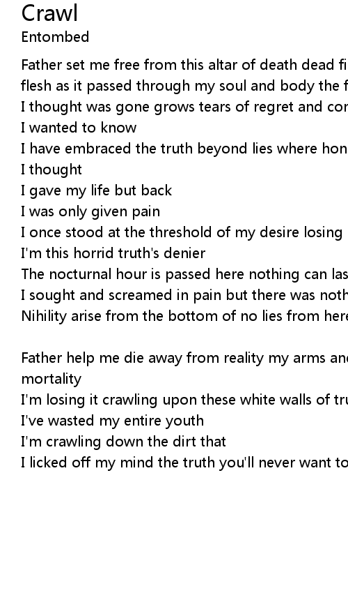 | I'm crawling down the dirt that | |