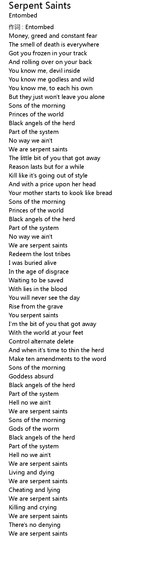 | We are serpent saints |