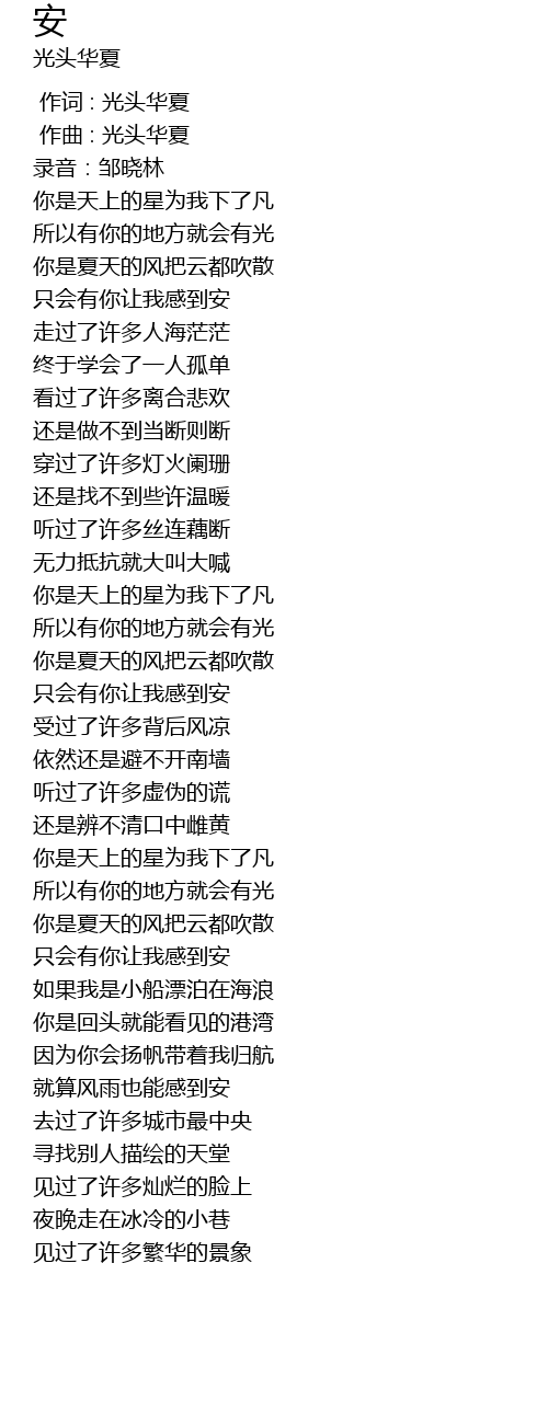 | [02:49.335] | zhǐ huì yǒu nǐ ràng wǒ gǎn dào ān |