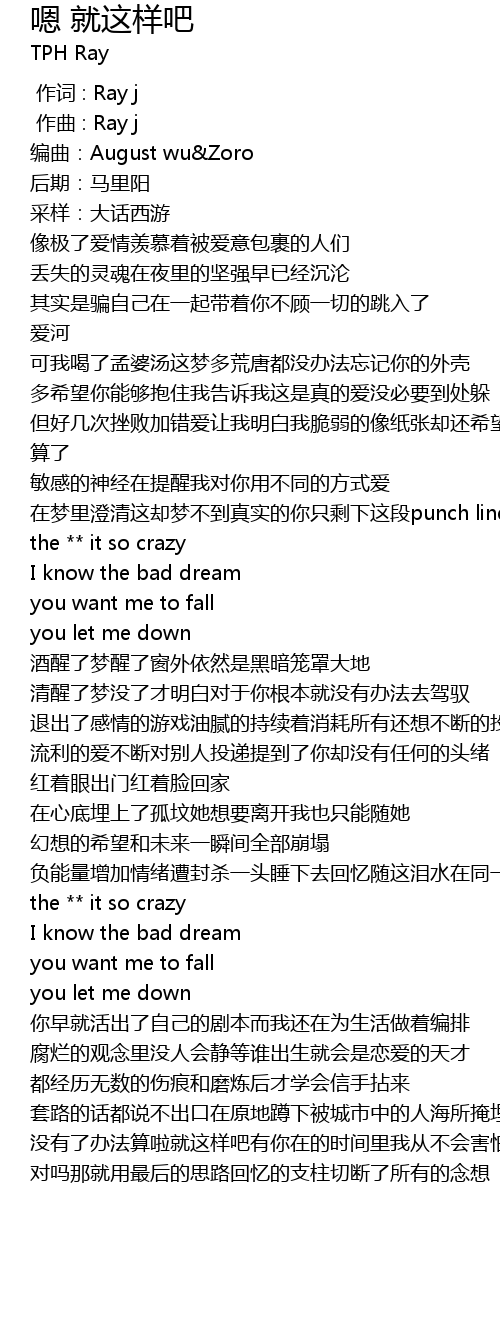 | [02:01.109] | 负能量增加情绪遭封杀一头睡下去回忆随这泪水在同一刻冲刷 |