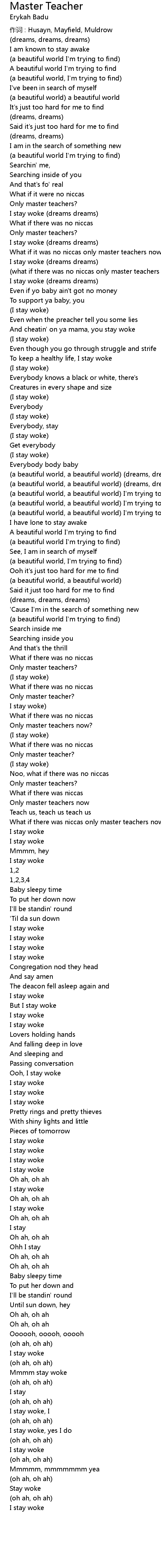 | 作词 : Husayn, Mayfield, Muldrow | |