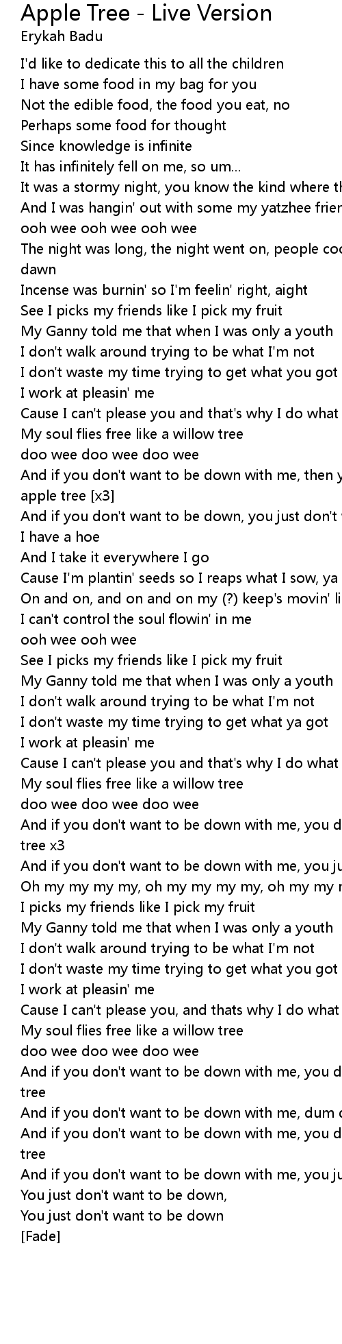 And if you don't want to be down with me, you don't want to pick from my apple tree