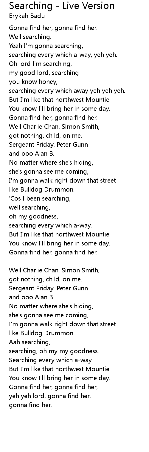 searching every which away yeh yeh yeh. |