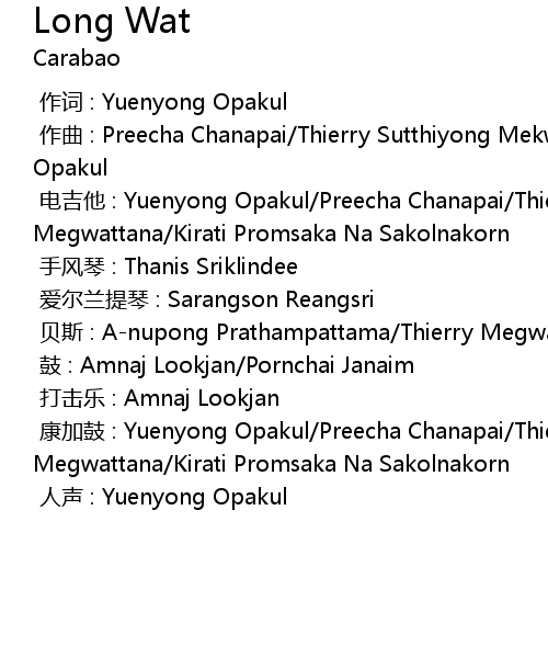 | [00:00.000] | 电吉他 : Yuenyong Opakul/Preecha Chanapai/Thierry Megwattana/Kirati Promsaka Na Sakolnakorn |