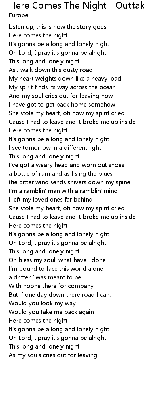 Here Comes The Night - Outtake from "Prisoners In Paradise" session Lyrics