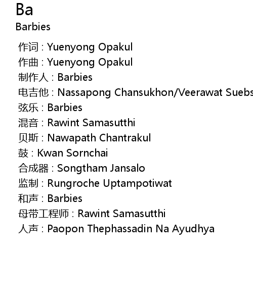 | [00:00.000] | 制作人 : Barbies |