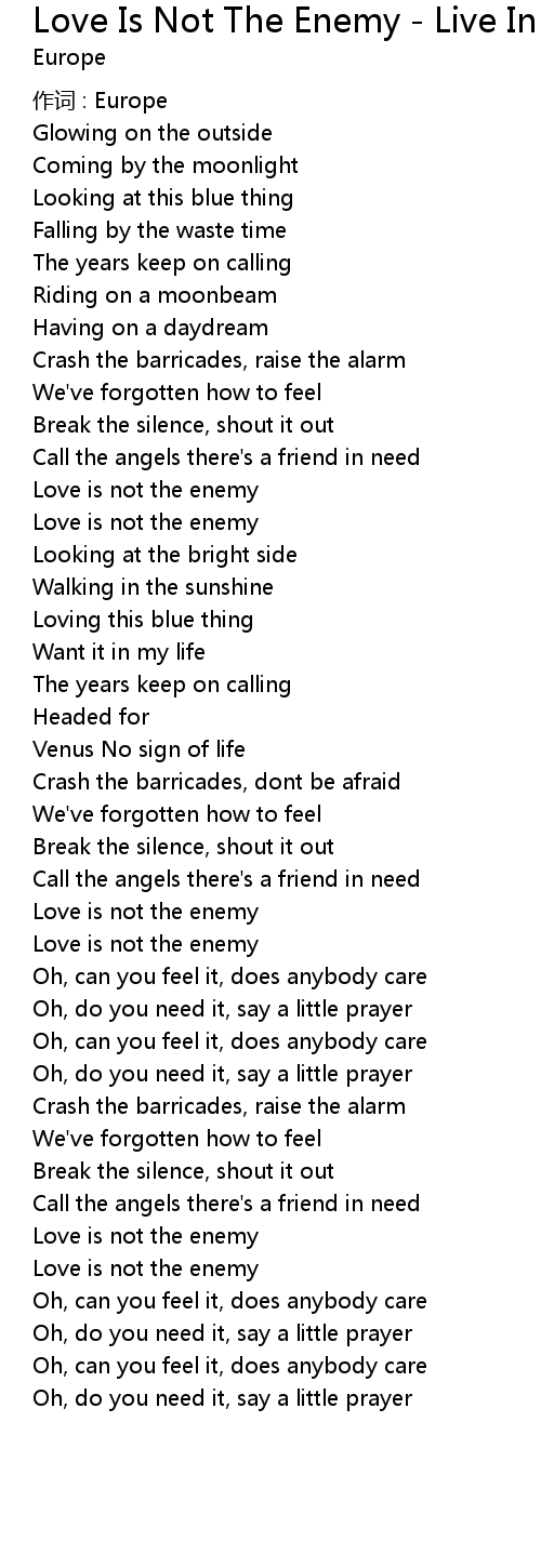 | Song | Love Is Not The Enemy - Live In London, UK 2010 |