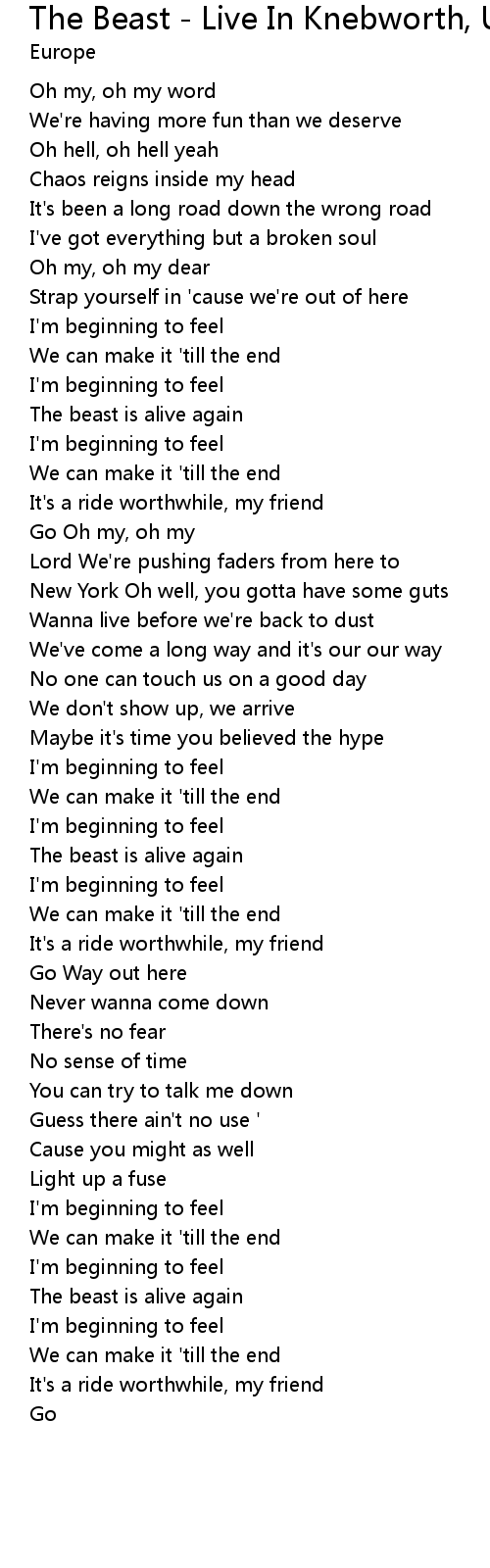 The Beast - Live In Knebworth, UK 2010 Lyrics