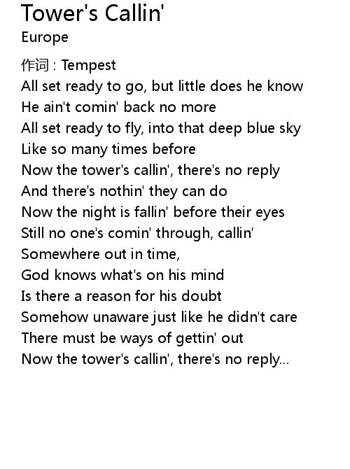 | Now the tower' s callin', there' s no reply | |