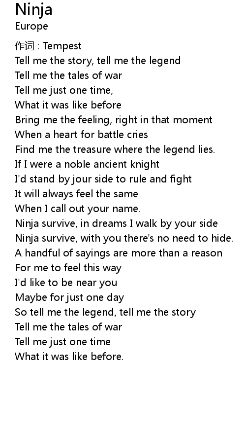| Ninja survive, in dreams I walk by your side | |
