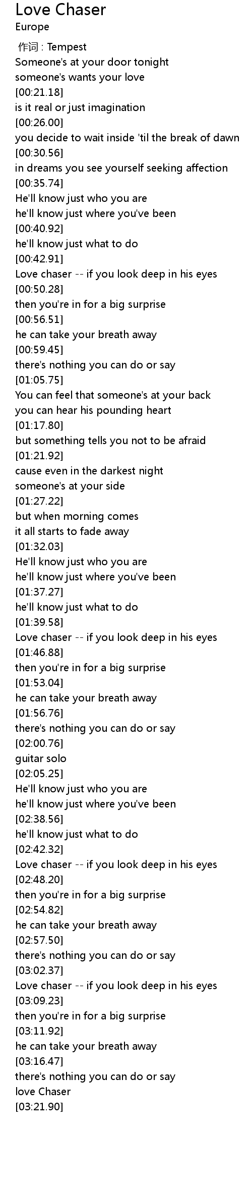 | [01:41.57] | Love chaser if you look deep in his eyes |