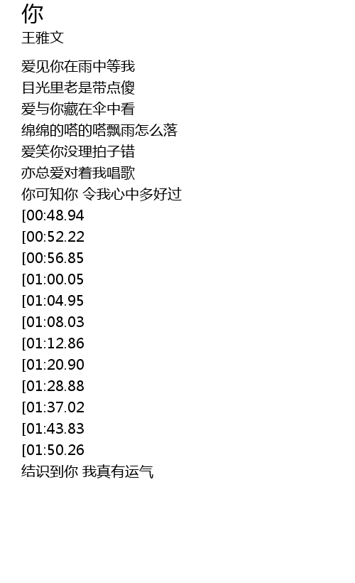 | [02:47.96][01:43.83] | nǎi yīn nǐ jiē yīn nǐ shì nǐ |