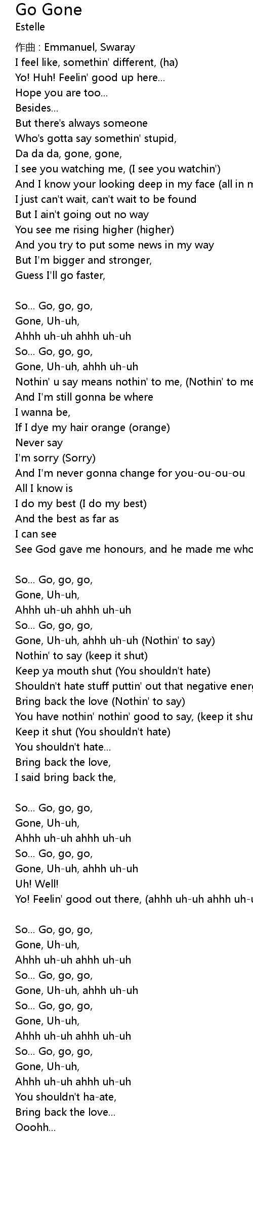 | Gone, Uh-uh, ahhh uh-uh (Nothin' to say) | |