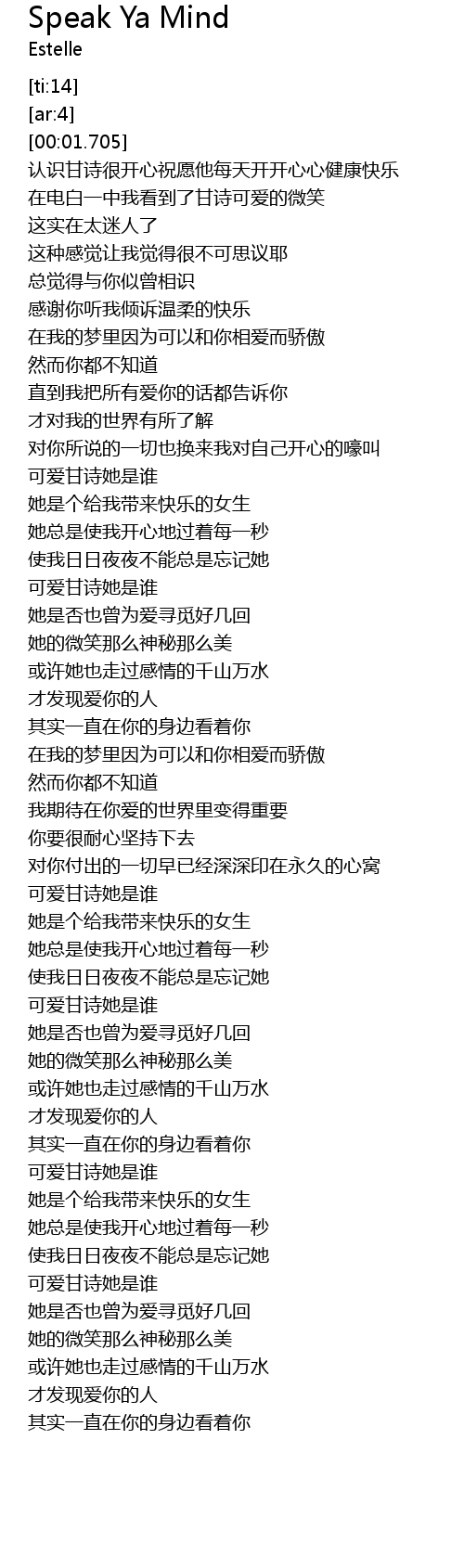 | [00:03.992] | 认识甘诗很开心祝愿他每天开开心心健康快乐 |
