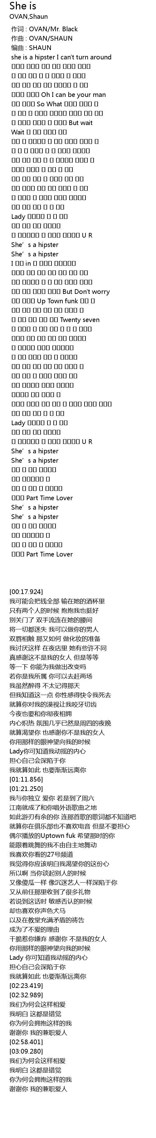 | [00:01.000] | 作曲 : OVAN/SHAUN |