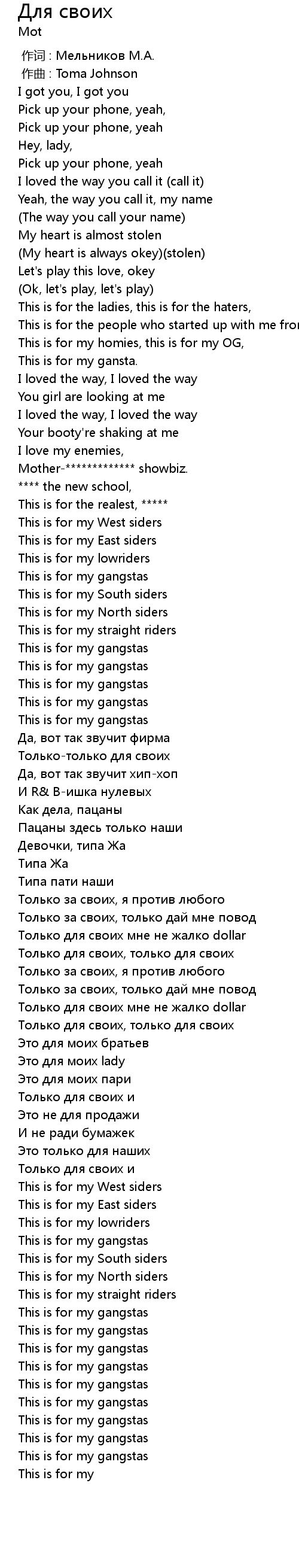 | [02:22.67] | Только для своих и |