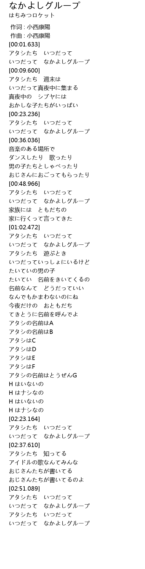 | [02:34.371] | いつだって なかよしグループ |