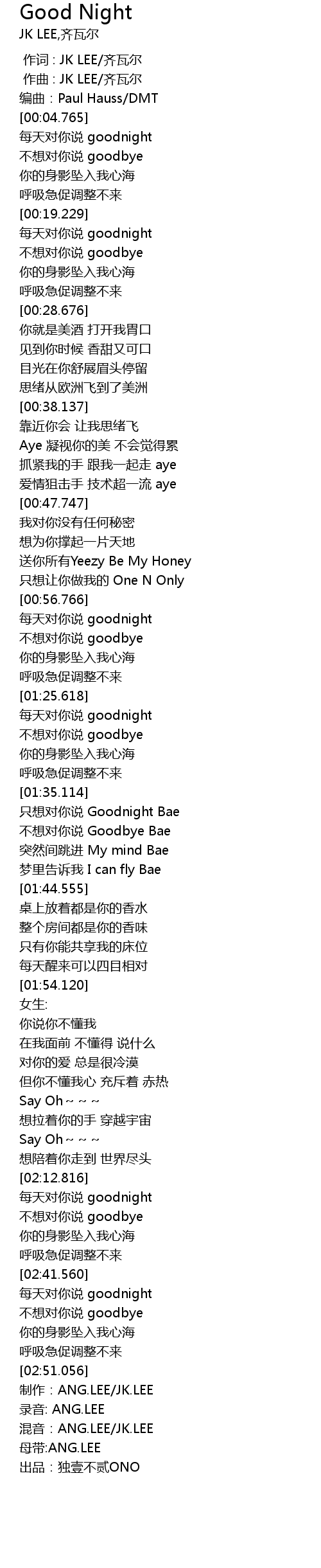 | [01:35.369] | 只想对你说 Goodnight Bae |