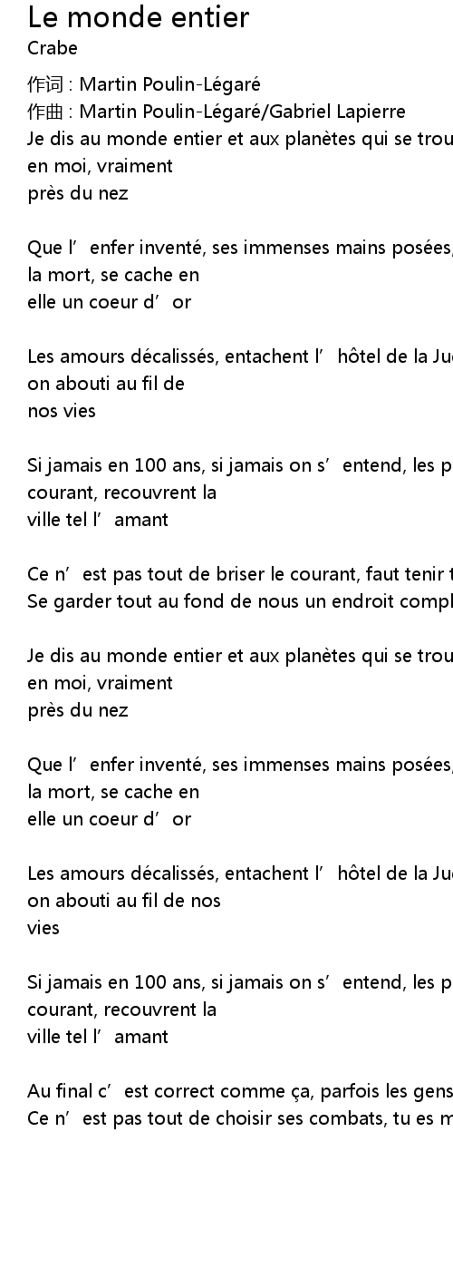 | Song | Le monde entier |