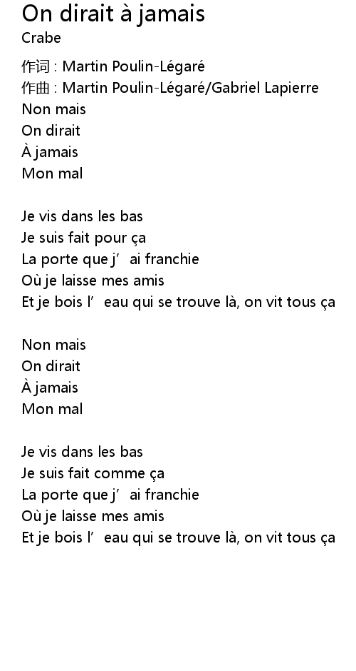 | zuò qǔ : Martin PoulinLé garé Gabriel Lapierre | |