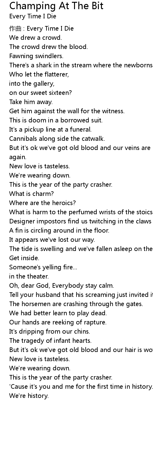 | Song | Champing At The Bit |