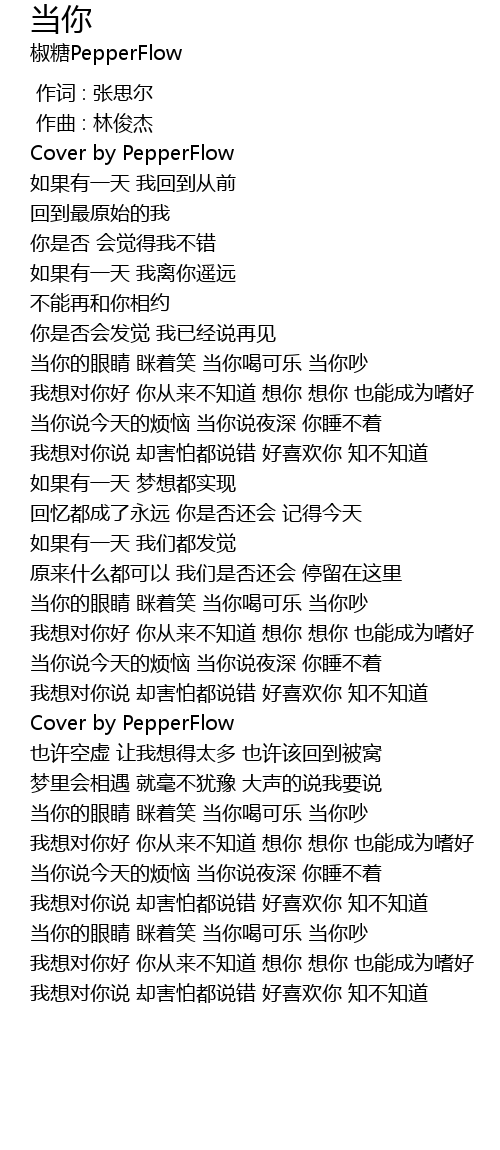 | [03:20.891] | 当你的眼睛 眯着笑 当你喝可乐 当你吵 |