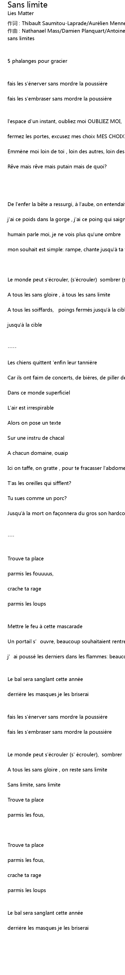 | 作词 : Thibault Saumitou-Laprade/Aurélien Mennessier | |