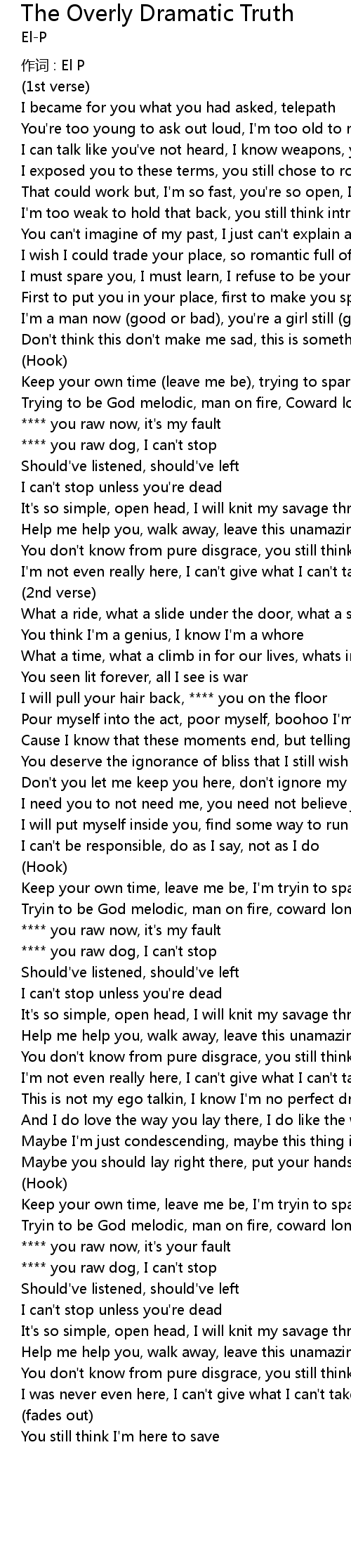 | I' m too weak to hold that back, you still think intrigue will last | |