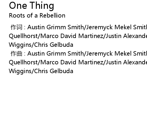 | [00:00.000] | 作曲 : Austin Grimm Smith/Jeremyck Mekel Smith/Adam Robert Quellhorst/Marco David Martinez/Justin Alexander Smith/Troy Christian Wiggins/Chris Gelbuda |