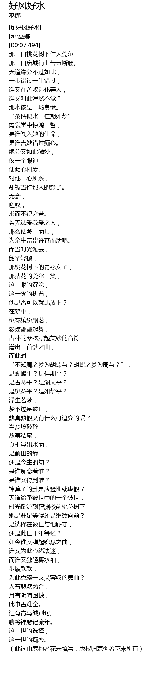 | [02:59.115] | cǐ cí yóu hán méi zhe huā wèi tián xiě, bǎn quán guī hán méi zhe huā wèi suǒ yǒu |