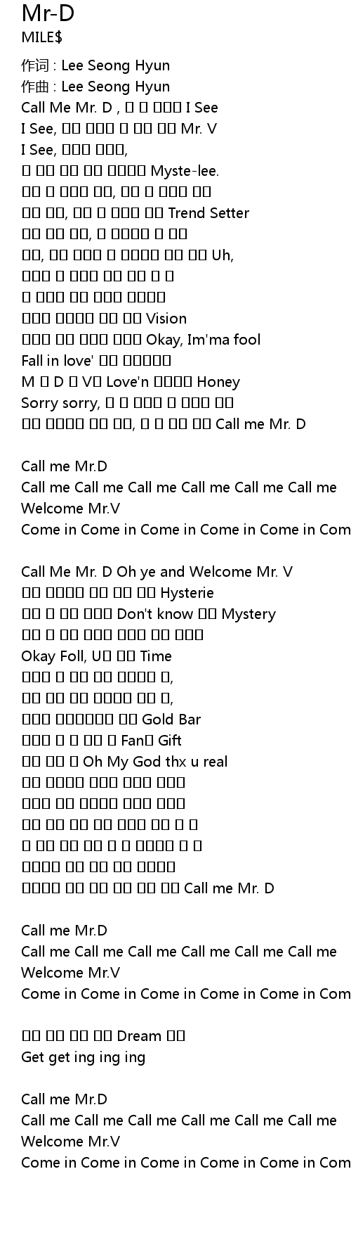 | Call Me Mr. D Oh ye and Welcome Mr. V | |