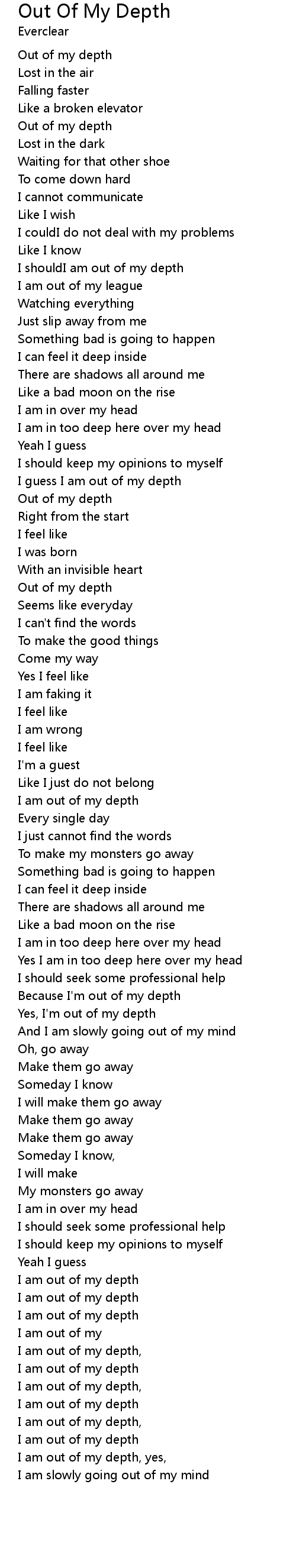 Yes I am in too deep here over my head |