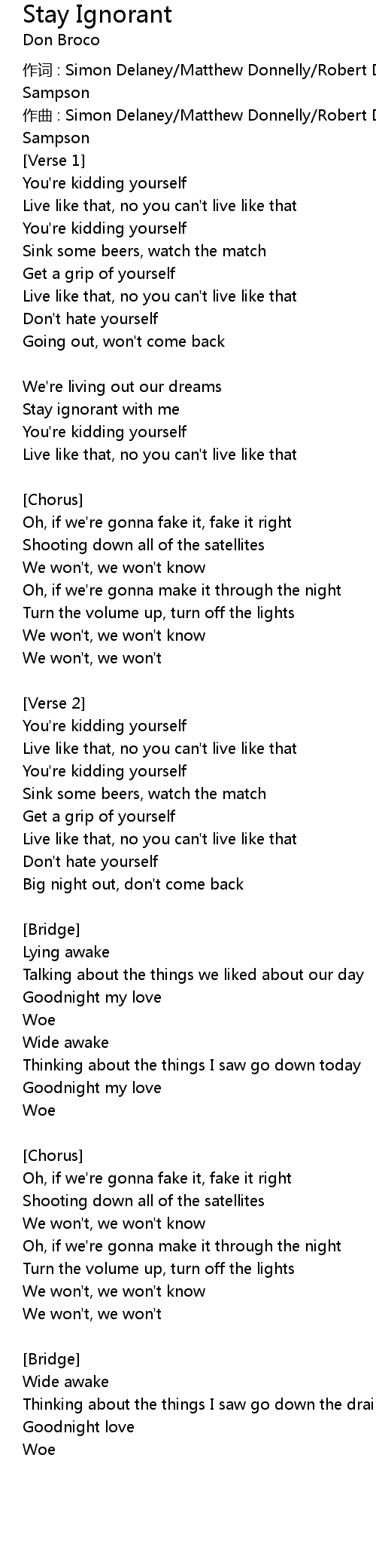 | Song | Stay Ignorant |