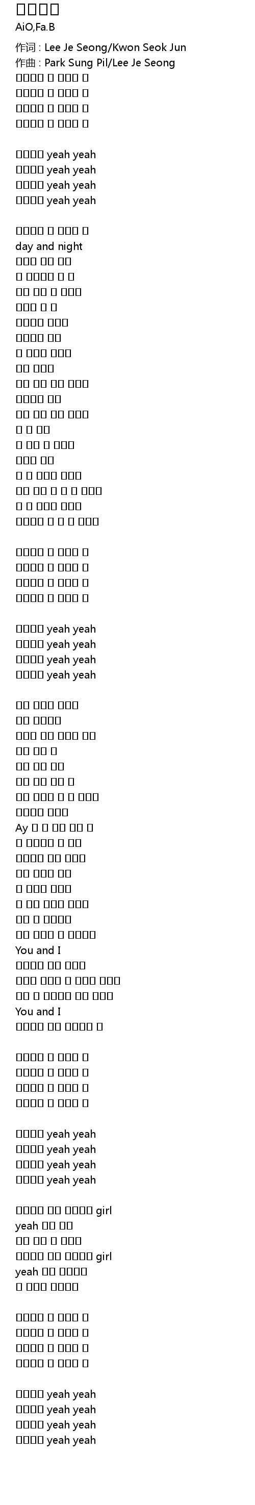 | 作词 : Lee Je Seong/Kwon Seok Jun | |