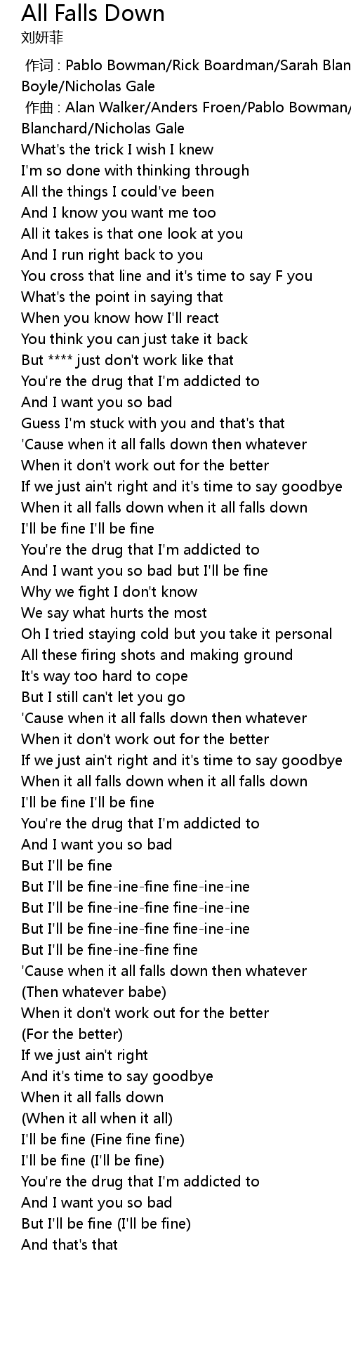 | [00:39.689] | ' Cause when it all falls down then whatever |