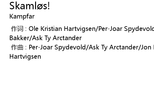 | [00:00.000] | 作曲 : Per-Joar Spydevold/Ask Ty Arctander/Jon Bakker/Ole Hartvigsen |