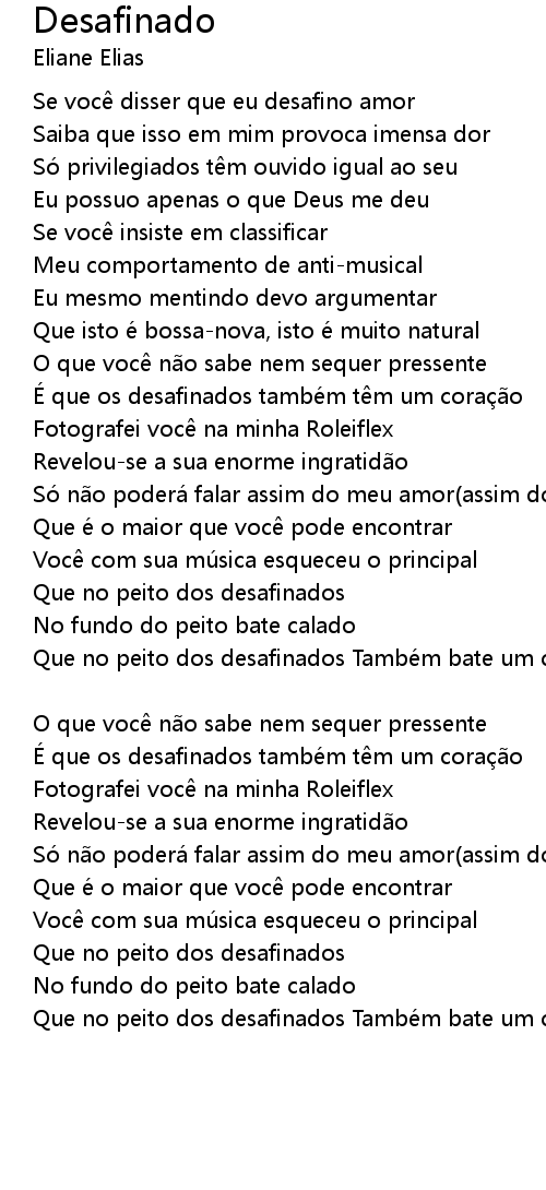 | Que no peito dos desafinados Tambe m bate um cora o |